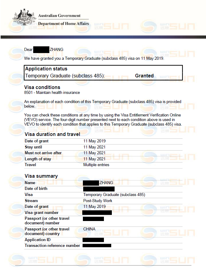 【485工签】恭喜Zhang同学485工签成功获批!