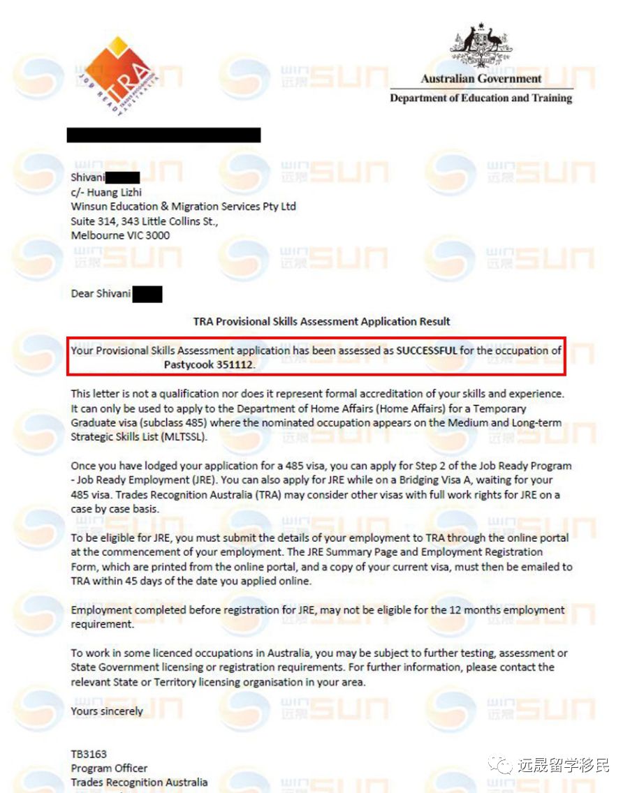 PSA对课程的要求比较高,这一步需要严格考察,选择符合要求的课程。通过这个符合要求的认证课程,雅思达到总分6,就有资格申请18个月的485工作签证。以下是最近获批的YANG同学的职业评估信+18个月的485工作签证批签信。